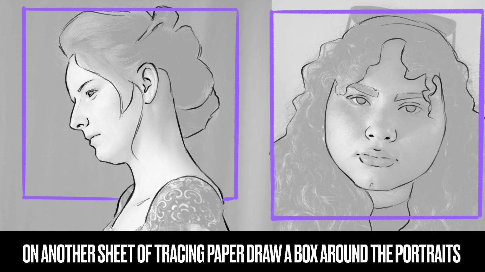 Once you’ve made your first drawing layer over a sheet of tracing/baking paper over the top of the photo and trace the actual shape of the face, hair and features.