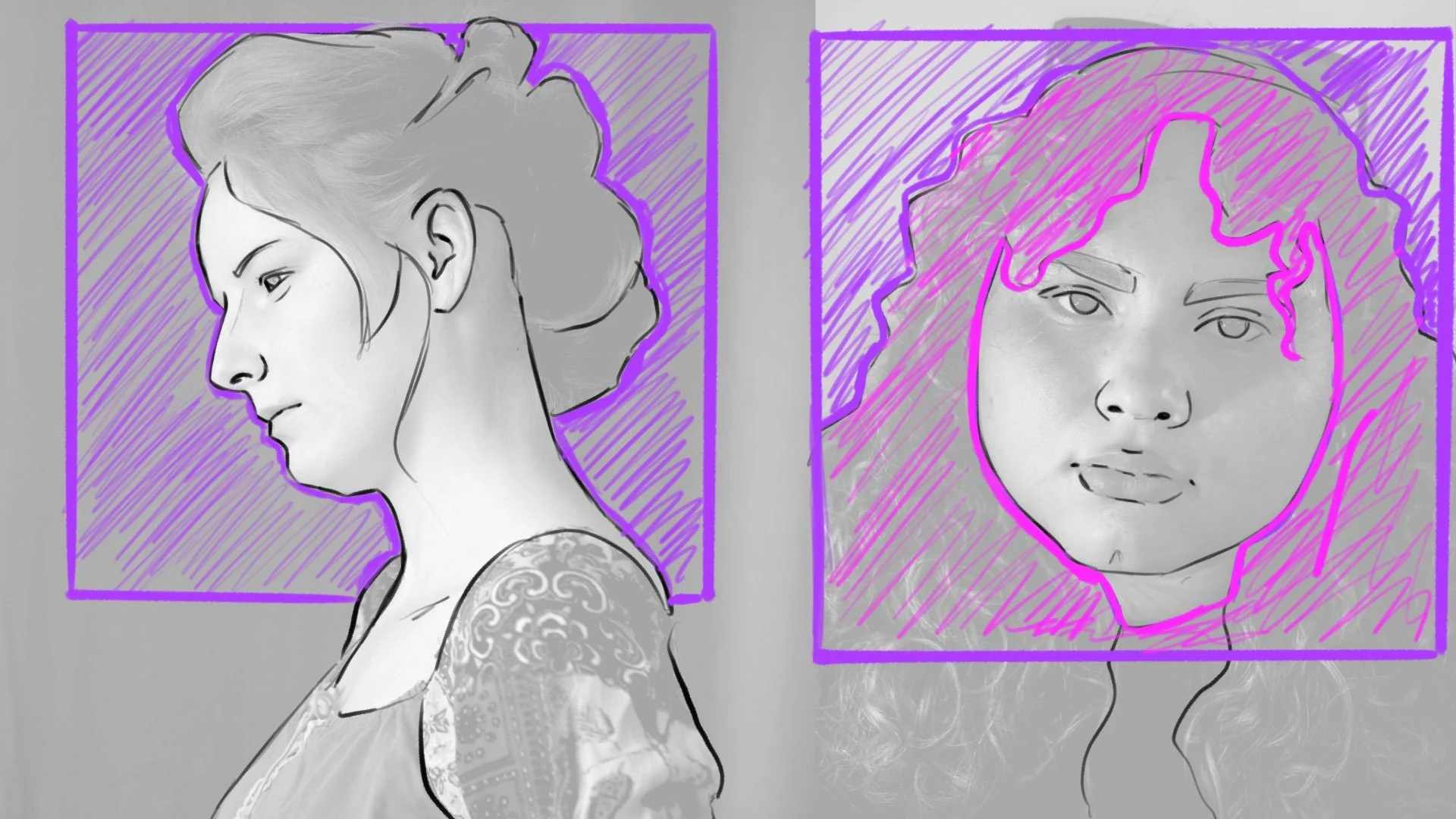 This helps you build up confidence in the actual shape of the face AND muscle memory of how to draw it.On another sheet of paper trace out the negative shapes of the background + hair (eg. in the slide show)